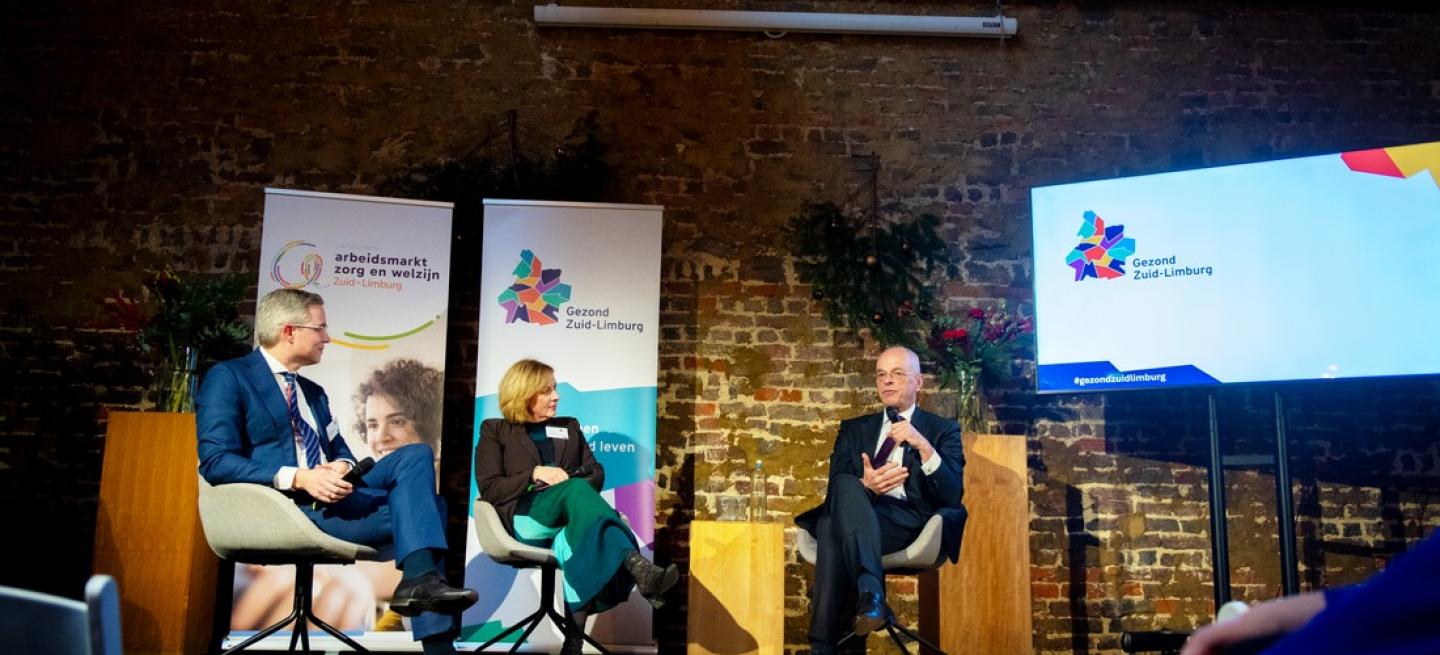 Demissionair minister Jan Anthonie Bruijn bezocht de regio en ging onder leiding van Aiko De Raaf in gesprek met Vivian Haine, namens deelnemende partijen, over het transformatieplan arbeidsmarkt zorg en welzijn Zuid-Limburg.